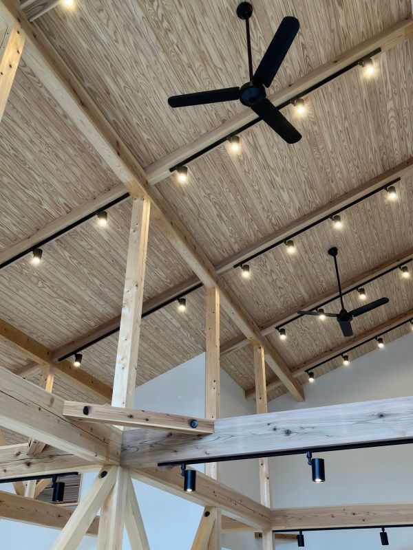 上を見上げると、杉の天井と太い梁が何本も通っていて素敵ですね。