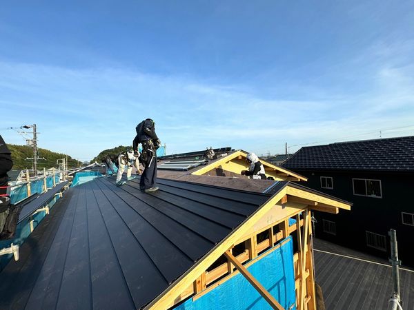 2日間の上棟を終えて、骨組み・屋根・断熱などの工事が進んでいます。