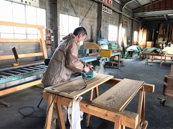 その為、ヤマタケの工場内で杉板の「浮造り(うづくり)」加工をしています。