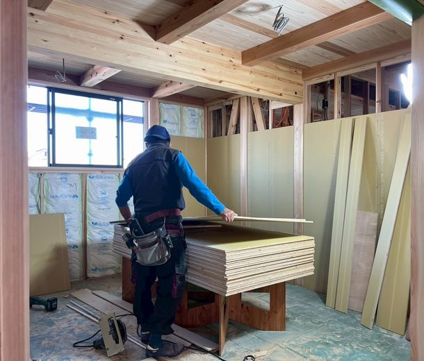 会社には、プレカット工場で加工された材料が戻ってきました。
