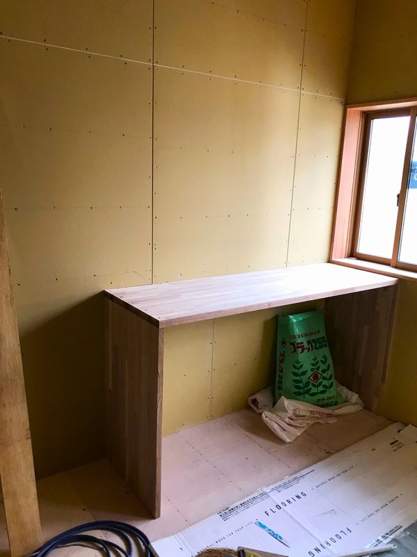 ブロックを固定して架台を作り、プレハブを組み立てて設置。