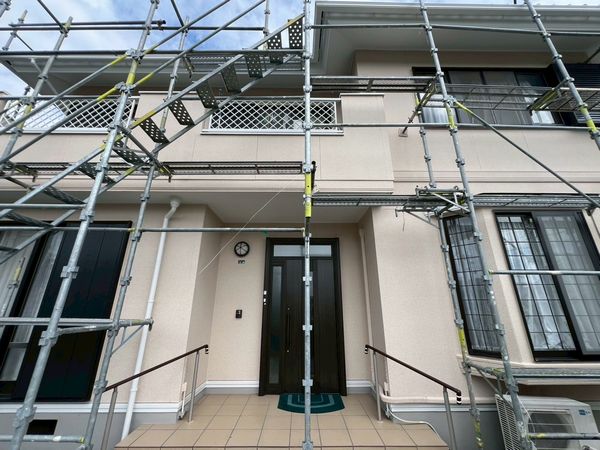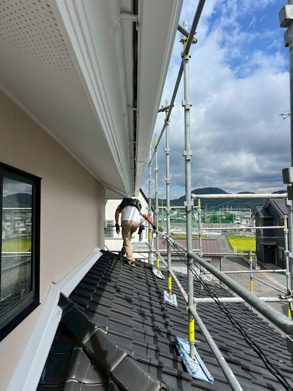 完全に乾いたところで足場を解体する前に、塗装状態を最終確認します。
