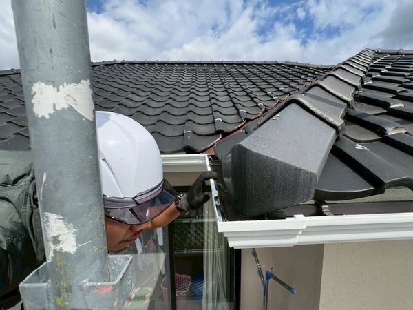 雨樋や集水桝に落ち葉やゴミが溜まっていないかチェック。雨樋のオーバーフローも雨漏りなどのリスクにつながります。