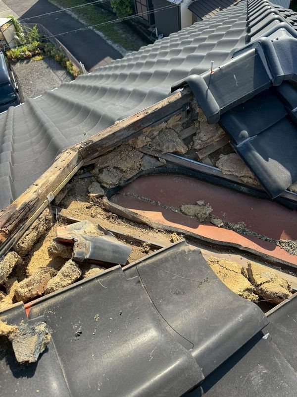 ここで、谷樋の劣化による雨漏り被害例をご覧ください…