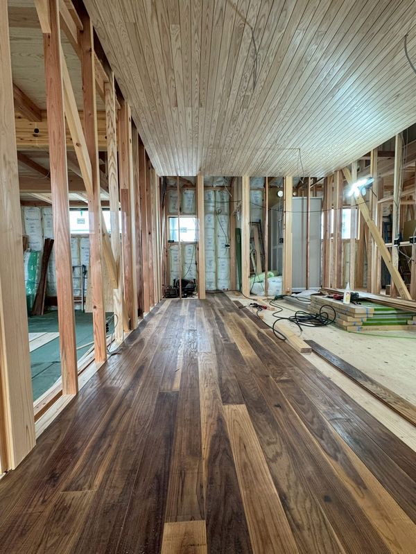 店舗新築工事 -床張工事・外壁工事