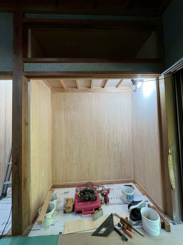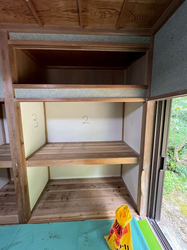 建物全体の強さと重さのバランス見ながら9カ所の物入れ等の工事を行いました。