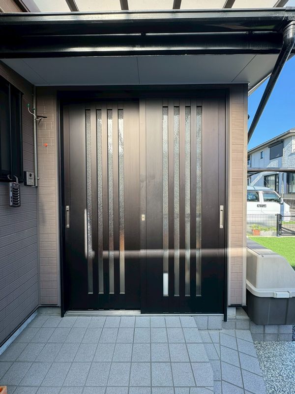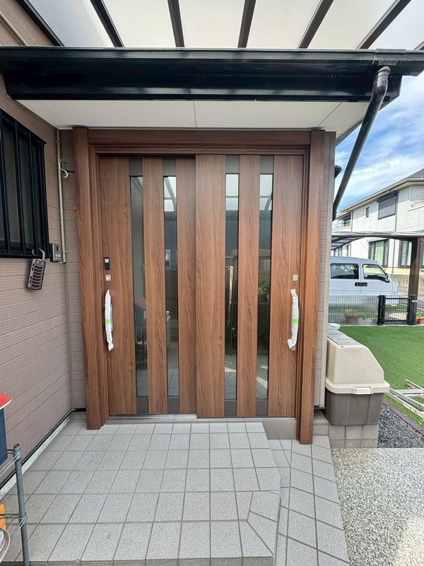 5年前から倉庫の新築やお宅のリフォーム工事をさせていただいている、藤枝市のOBお施主様I様より、「玄関ドアを取り替えたい」とのご依頼をいただきました。