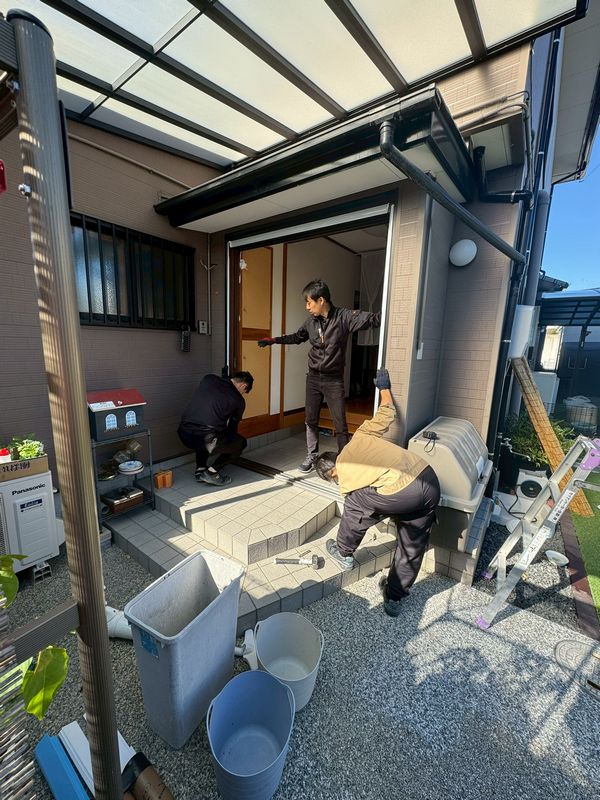 今回のI様邸の玄関もこの「カバー工法」で施工しました。