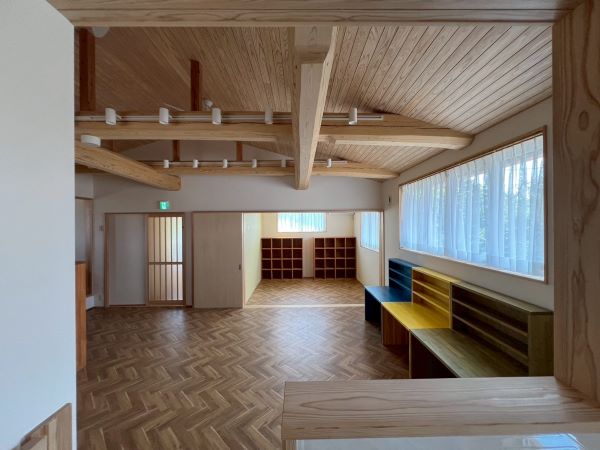 太鼓梁が見守る、ヤマタケらしい木のぬくもりあふれるやさしい空間。