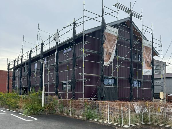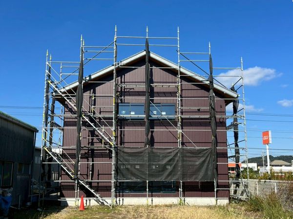 牧之原市の店舗新築工事現場では、外壁工事が完了しました。