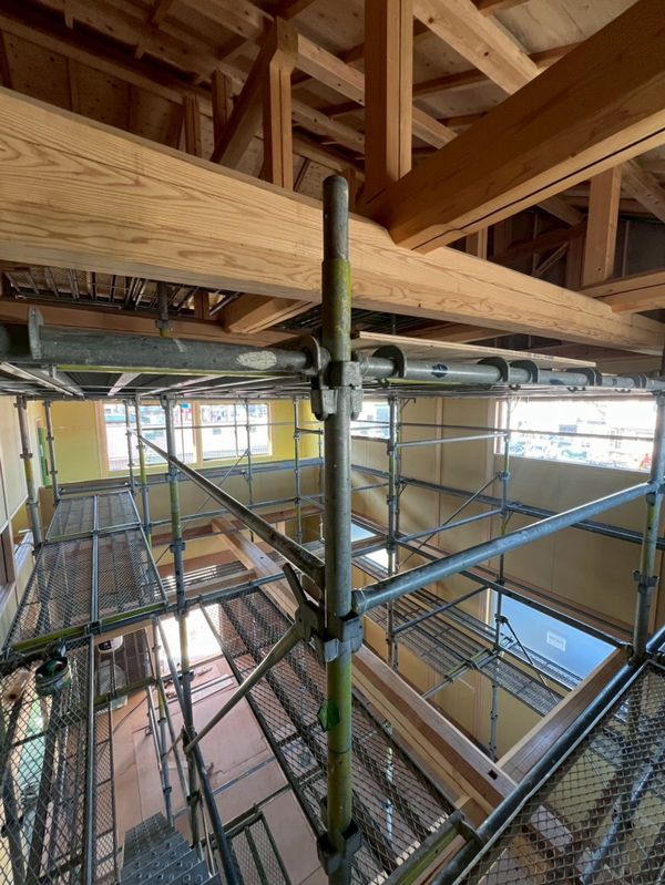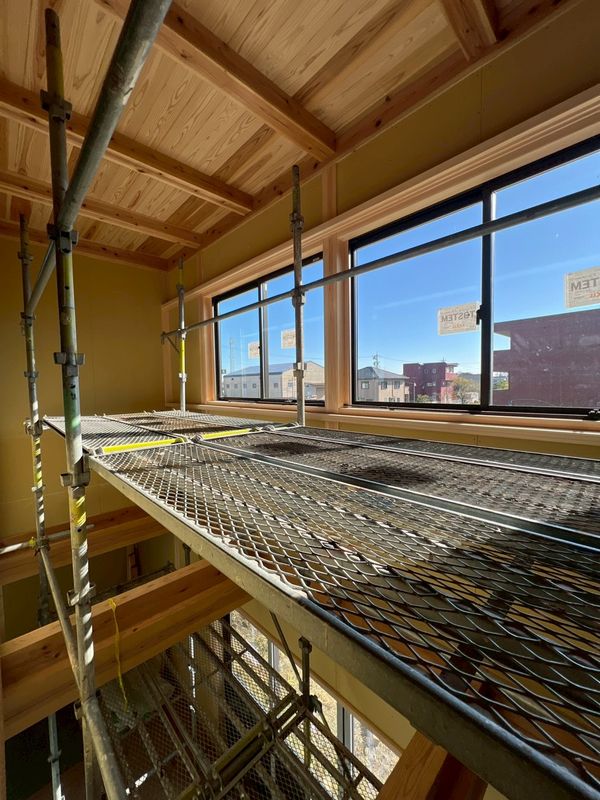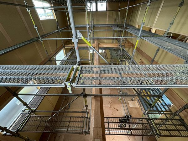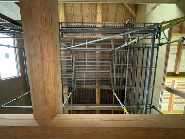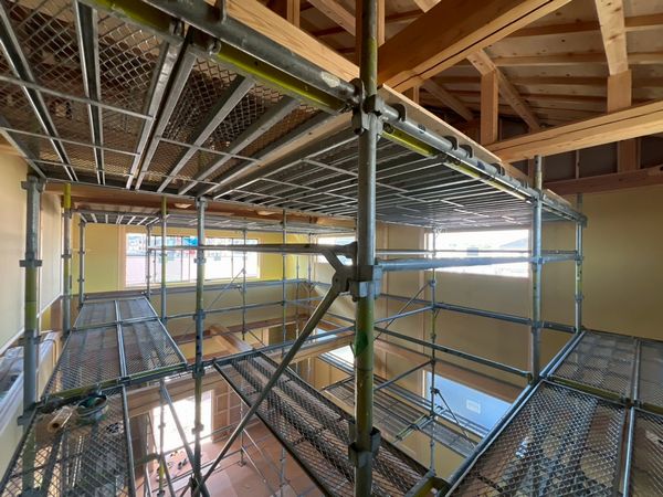 2か所ある吹き抜けには足場を設置。