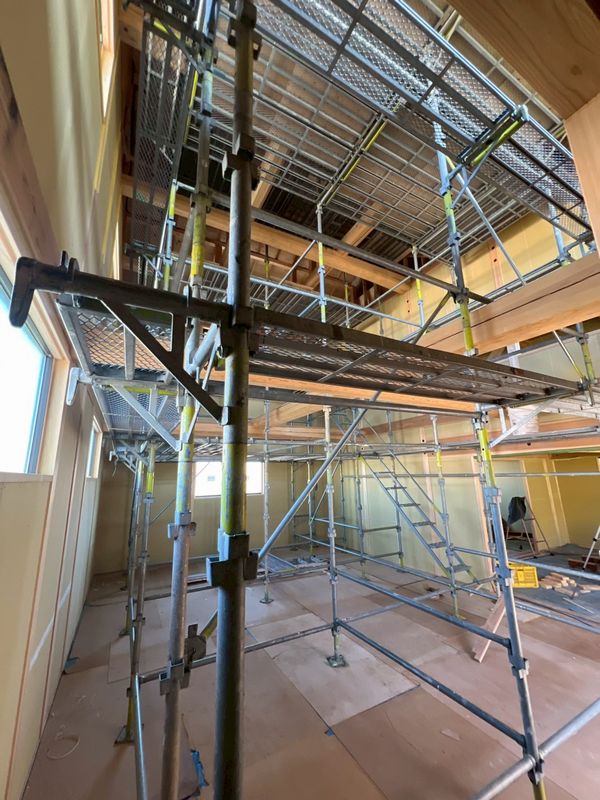 吹き抜け②は仮の天井を張っていましたが、撤去して足場を設置しました。