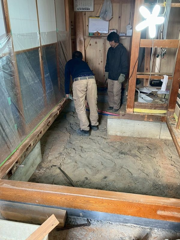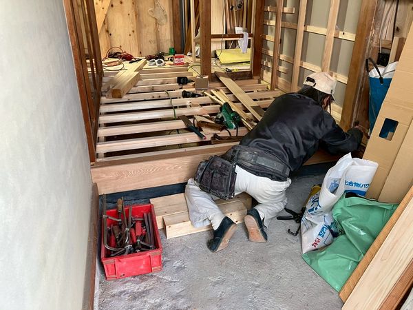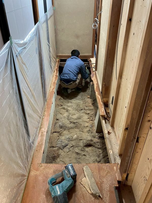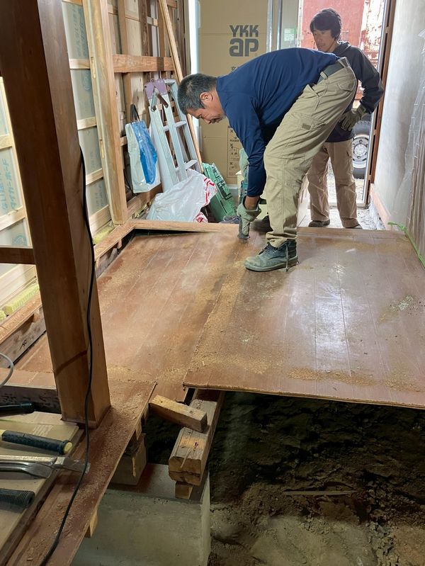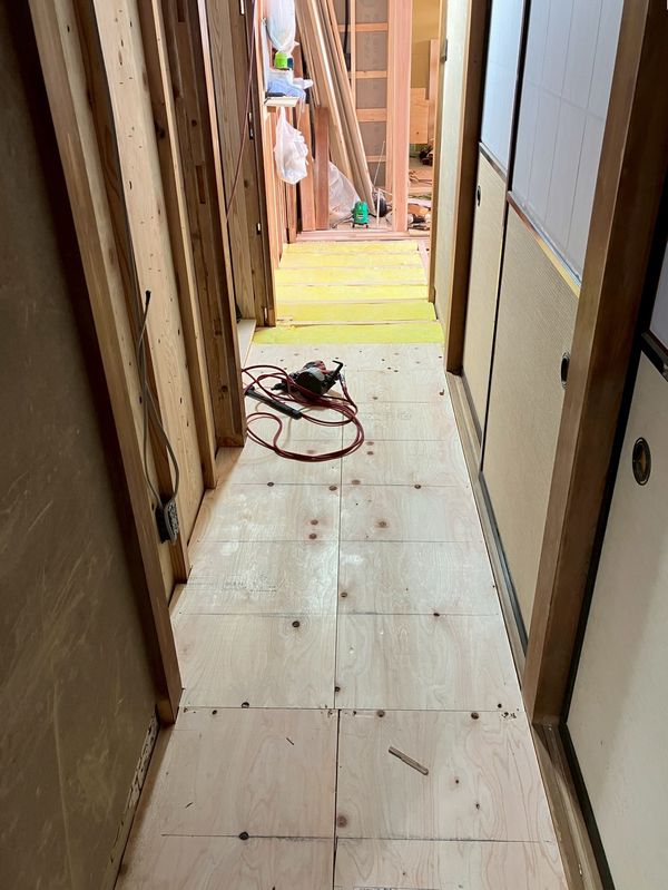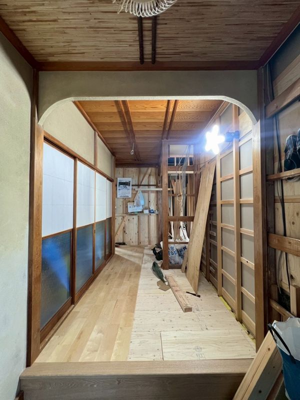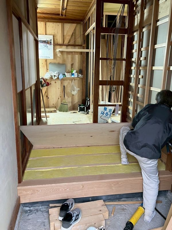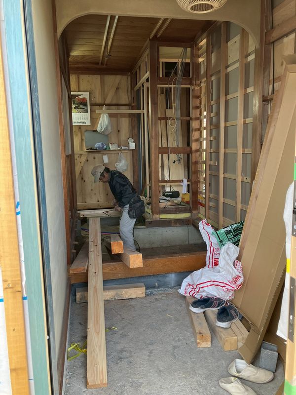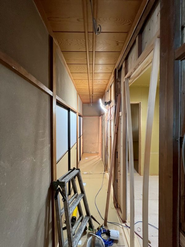 耐震リノベーション工事 -足場解体・玄関廊下工事開始