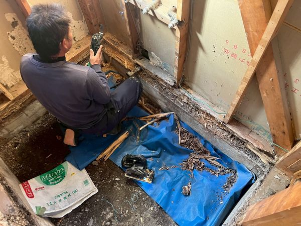前回、解体工事を行いましたが、お風呂はシロアリの被害を受けている真っ最中…
