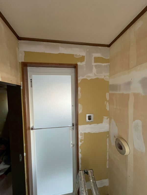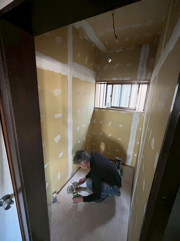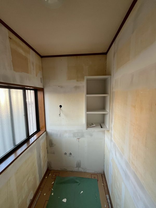 藤枝市T様邸の、住宅省エネ2025キャンペーンの補助金を活用した水まわりリフォーム工事現場では設備の設置が終わり、工事はほぼ完了しました。