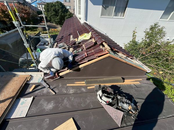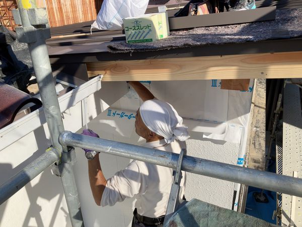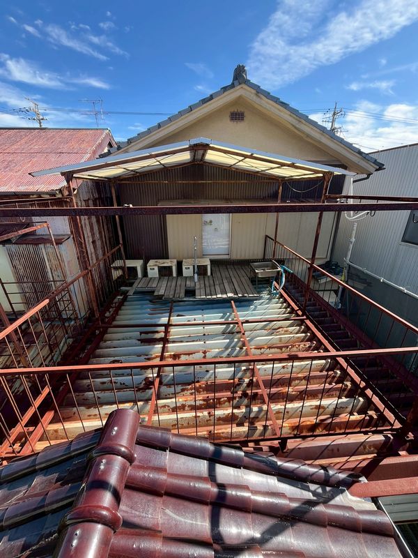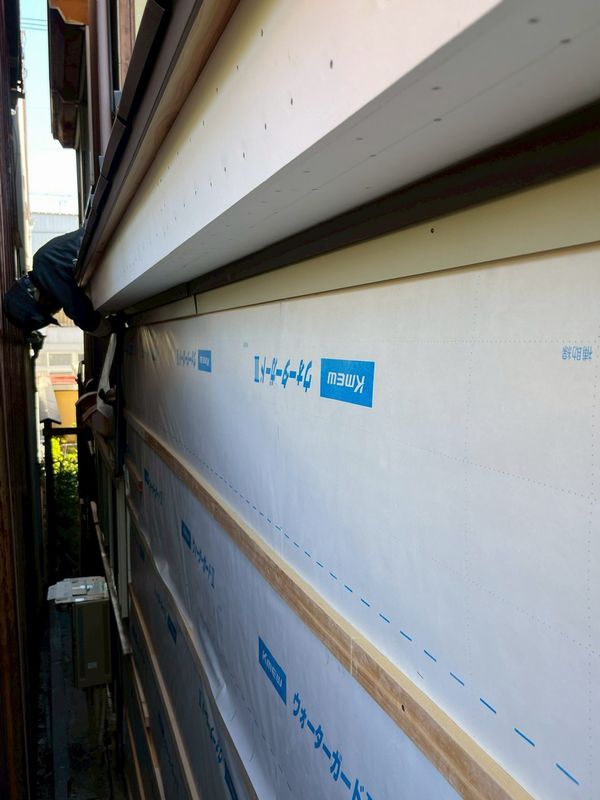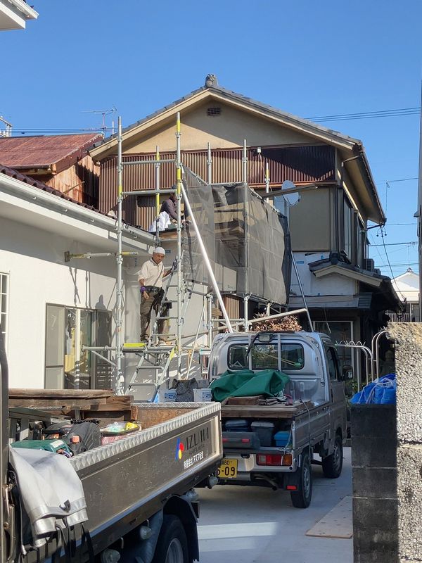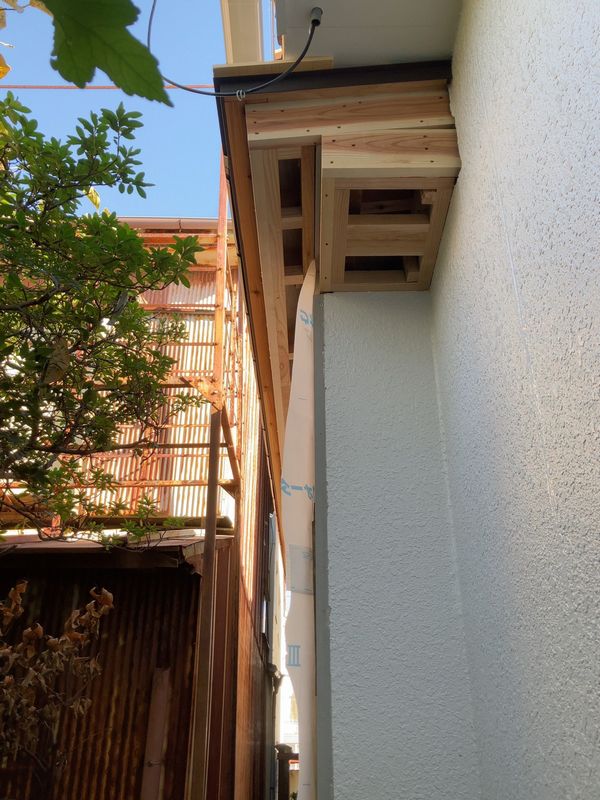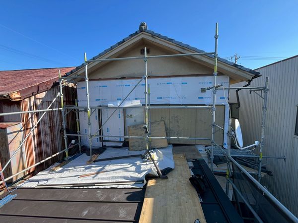 主屋と離れをつなぐ「渡り廊下」の改修工事を行っている焼津市のS様邸では、外部工事が完了しました。