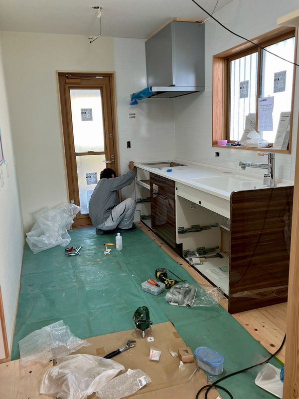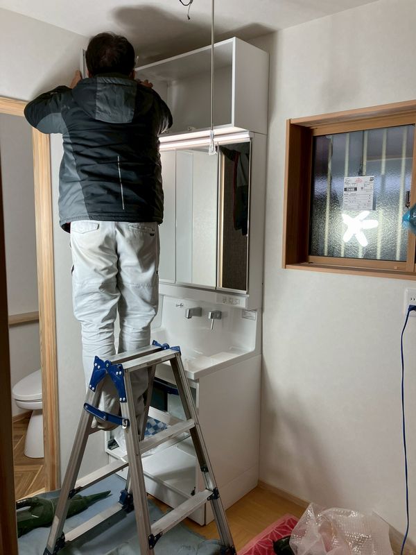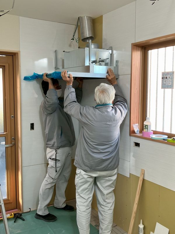 島田市N様邸の耐震リノベーション工事現場では、設備の設置が行われました。