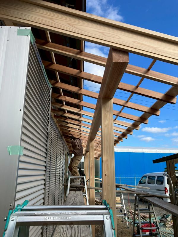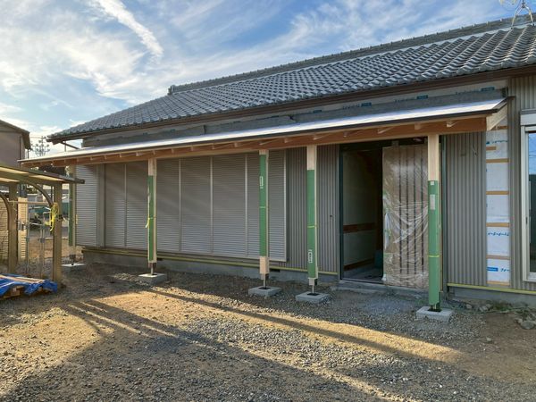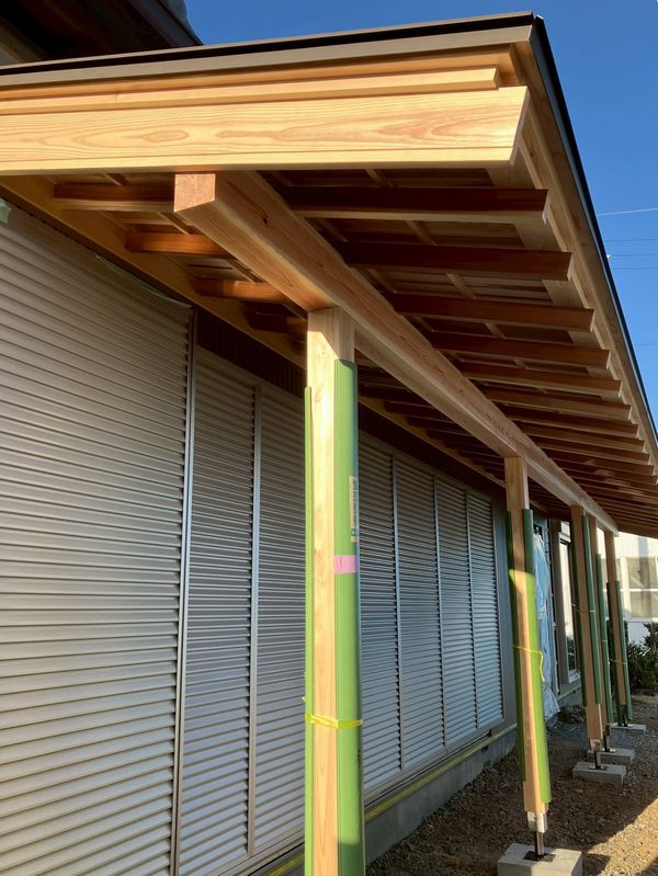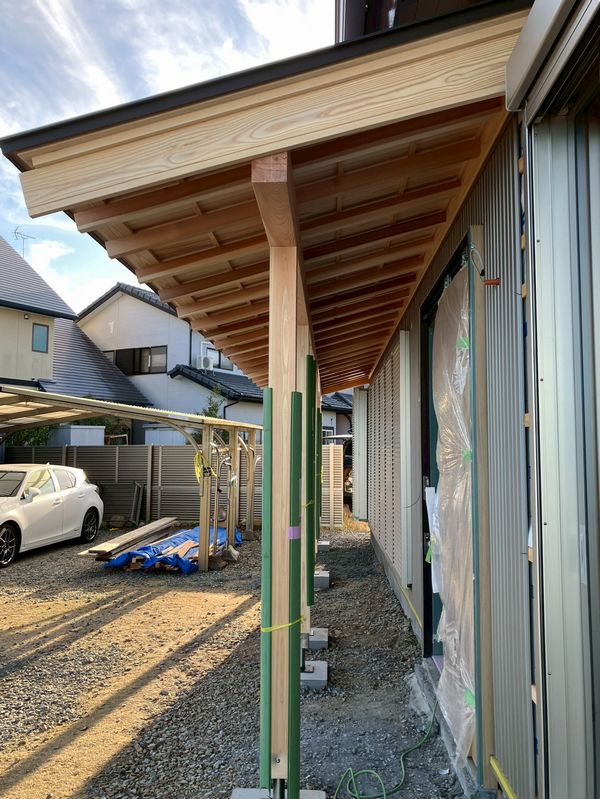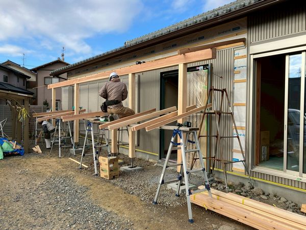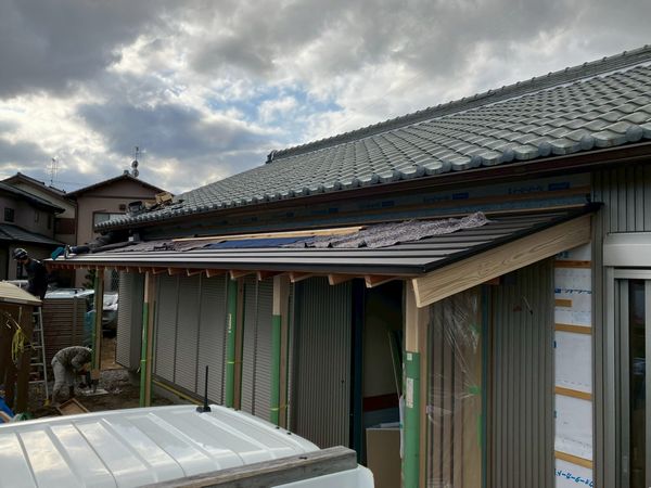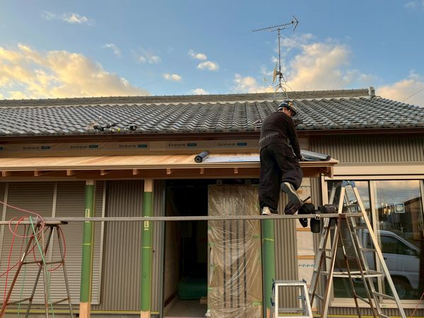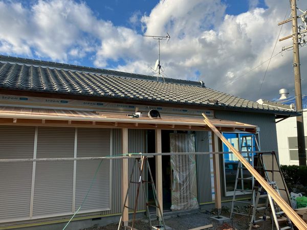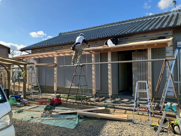 島田市N様邸の耐震リノベーション工事現場では、庇の施工が行われました。
