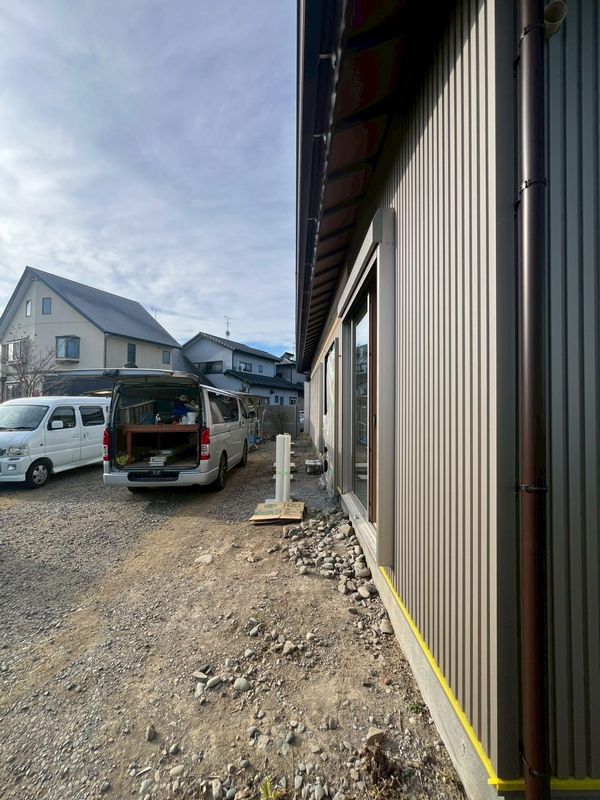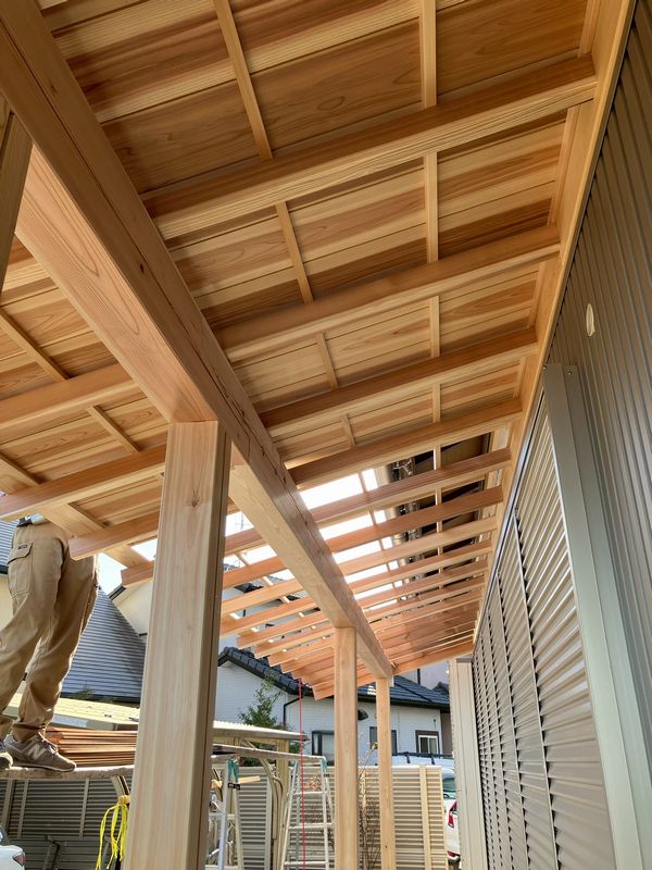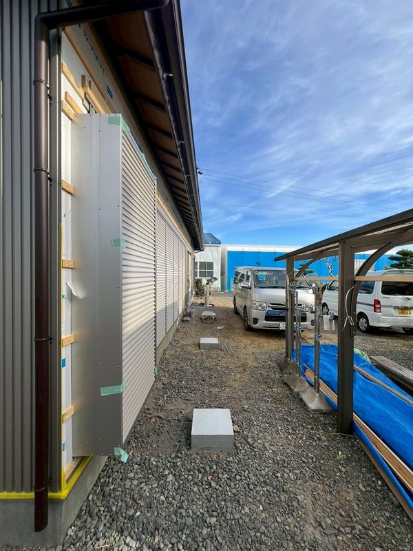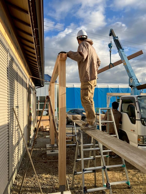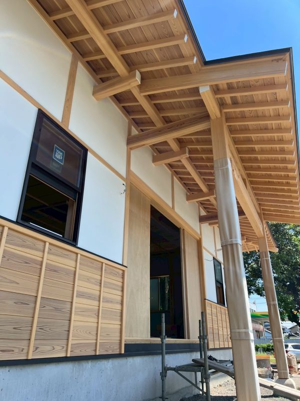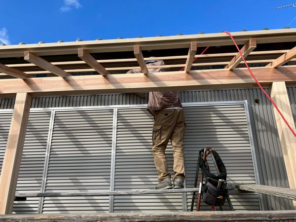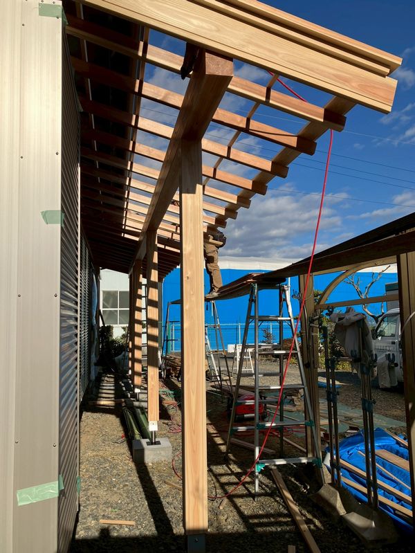 島田市N様邸の耐震リノベーション工事現場では、庇の施工が行われました。