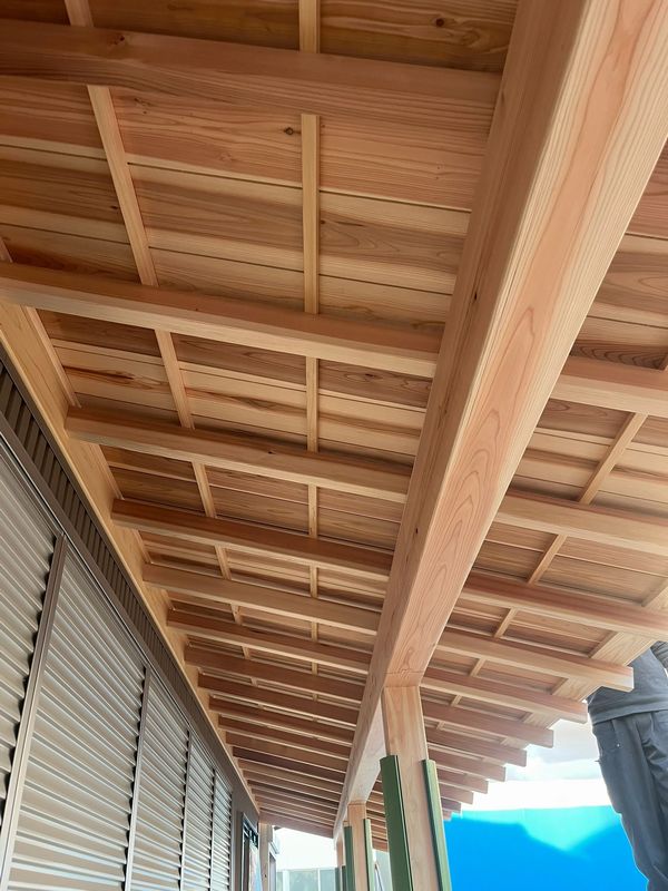(ちなみに木小舞を使わず垂木に直接裏板を横張りすると以下のような仕上がり。どちらも趣があります)
