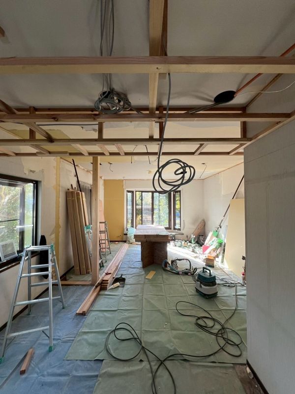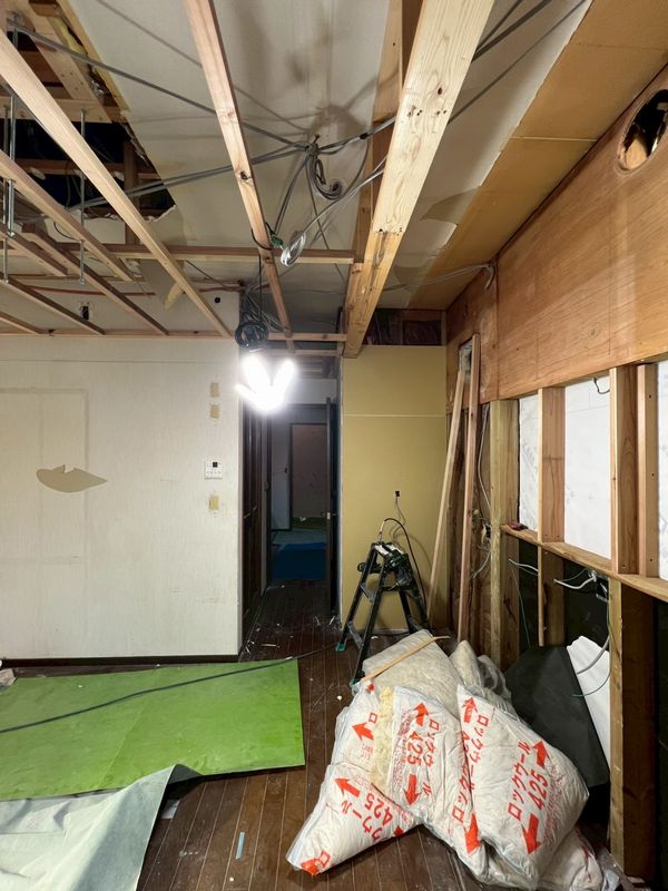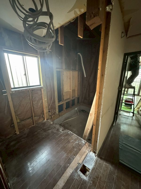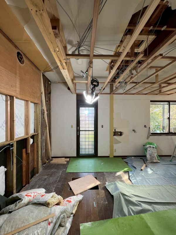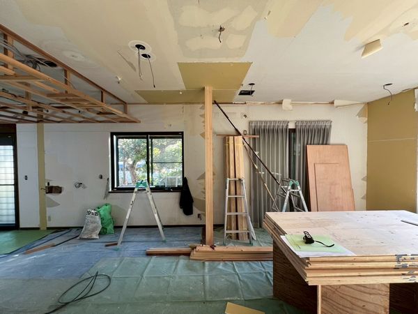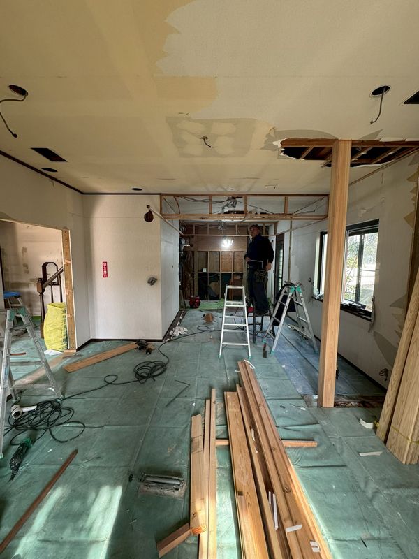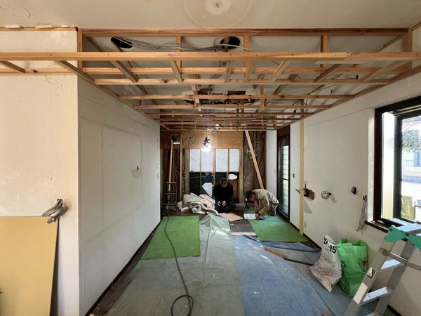菊川市のI様邸のリノベーション工事現場では、解体工事が完了し、