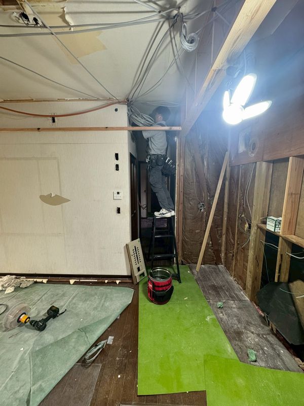 大工工事・電気配線・クロス下地処理が進んでいます。