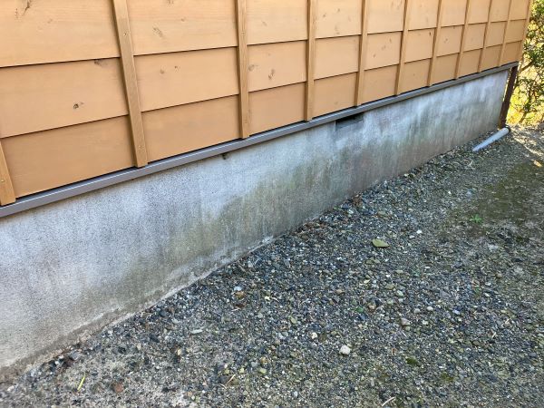 「倉庫の、基礎と犬走りのひび割れや汚れが気になる」