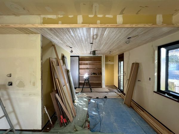 菊川市のI様邸のリノベーション工事現場では大工工事が大詰めを迎えています。