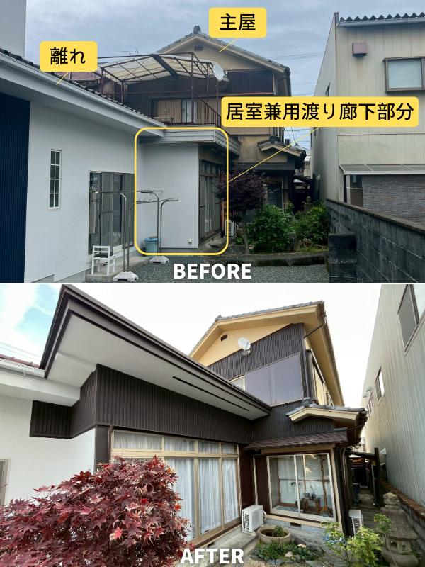 そのなかで老朽化が気がかりだった「渡り廊下」は居室も兼ねていることから、