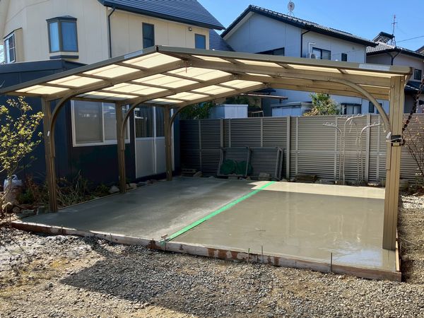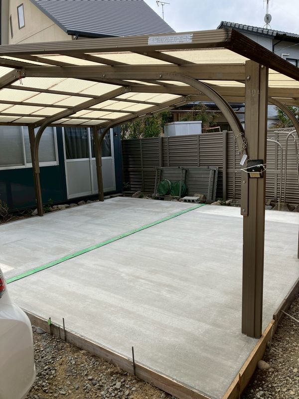 引き続き、既存カーポートの土間コンクリート打設工事を行いました。