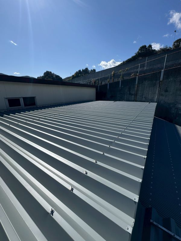 ところどころに穴があいていた倉庫の屋根はカバー工法で仕上げ