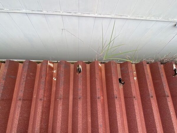 経年劣化により錆が目立ち、屋根にはところどころ穴があいています。
