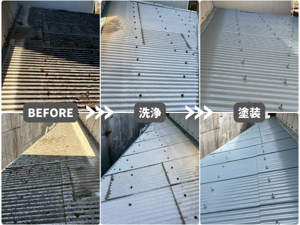 劣化の少ないところは、洗浄して再塗装で仕上げ