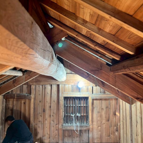 こちらの蔵の、立派な梁は「松」の木です。