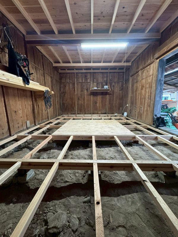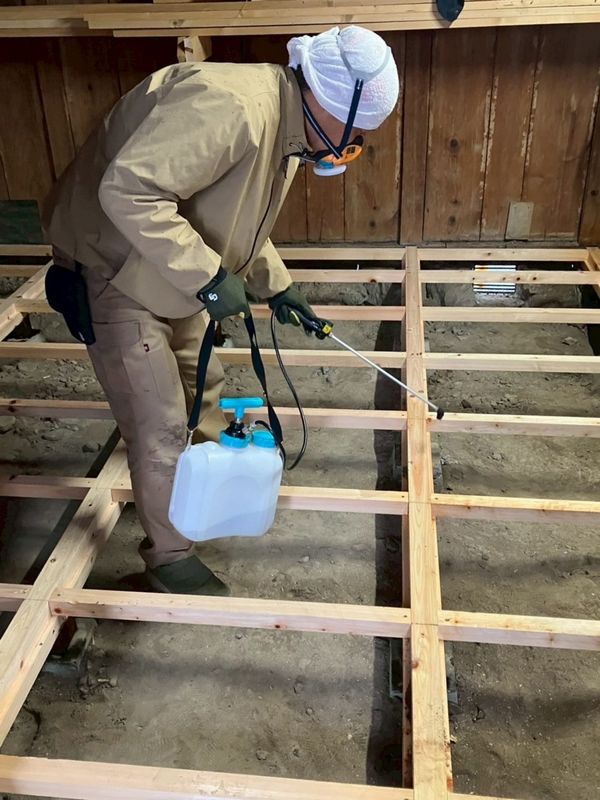 新たに床組みを施工後、防蟻処理。