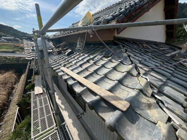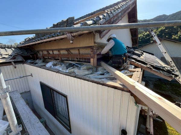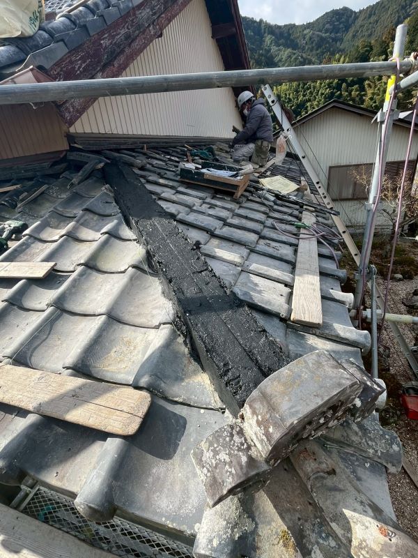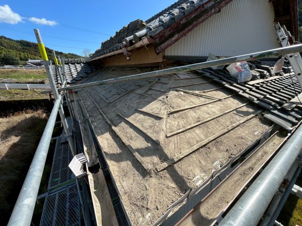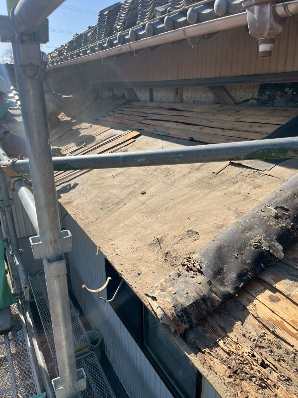 瓦、土、野地板、傷んだ垂木を順番にはずしていきます