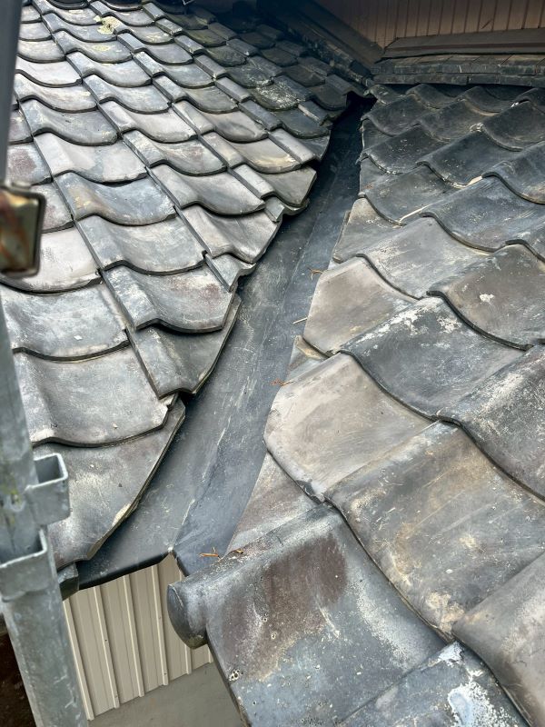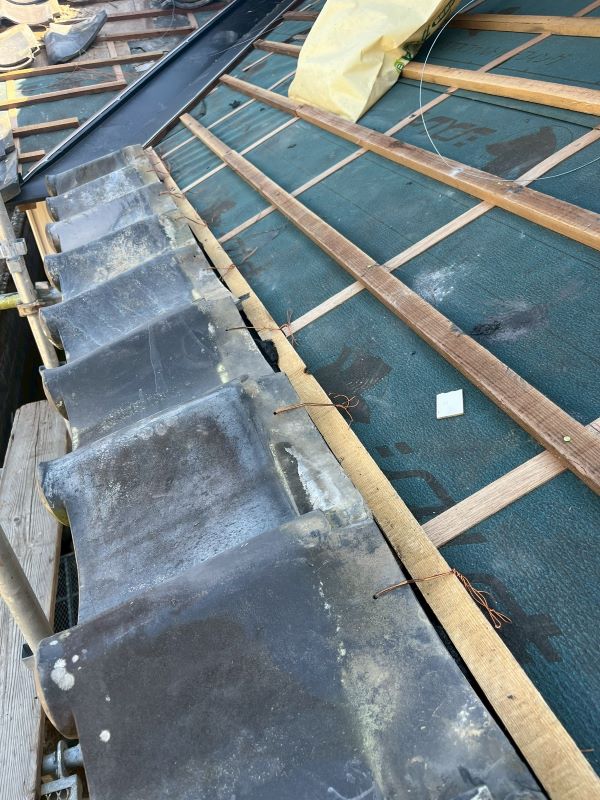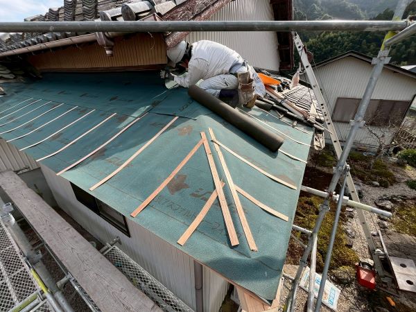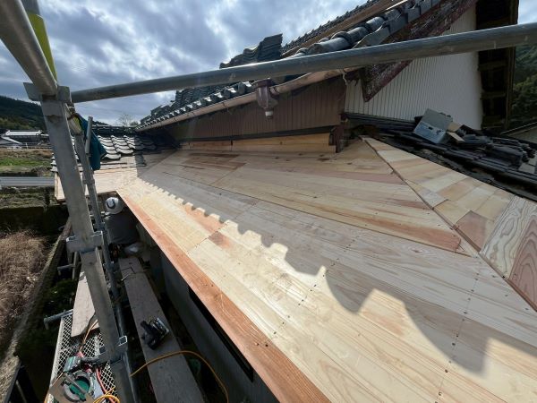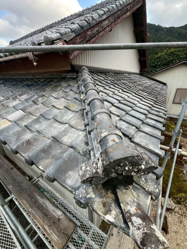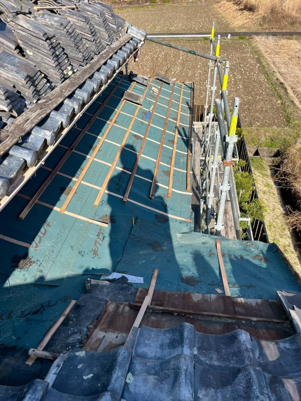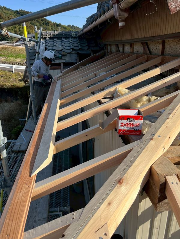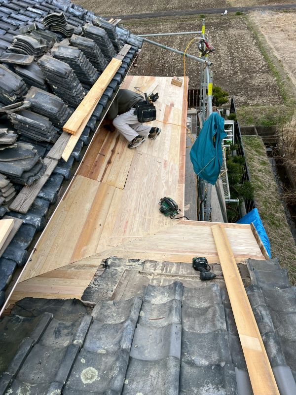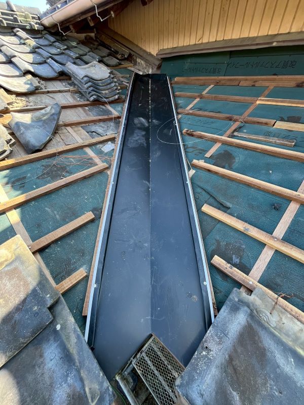 今回、隅~谷までの構造部分を新たに施工して瓦を戻す工事を行います。