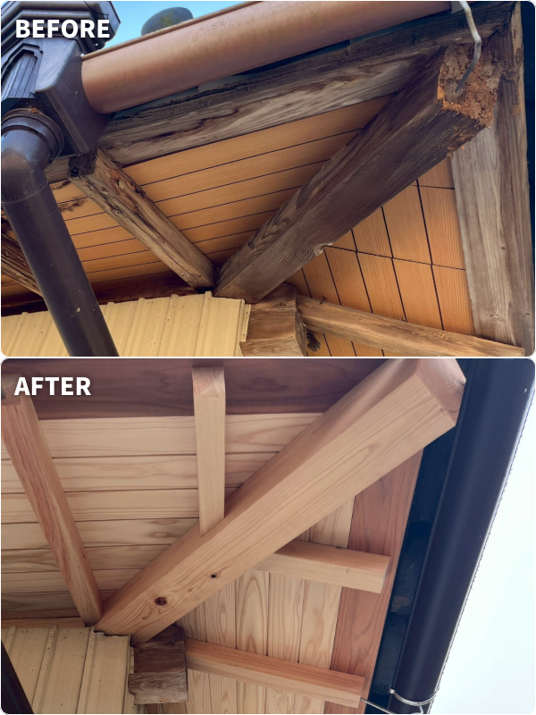 今回のように屋根の内部の木材が腐食し、建物の骨組みにまで影響が及ぶケースや、