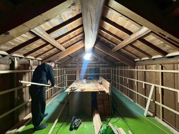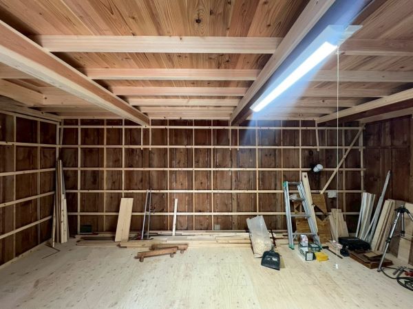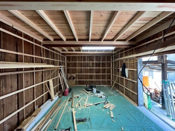 蔵のリフォーム工事 -床張り・壁下地施工