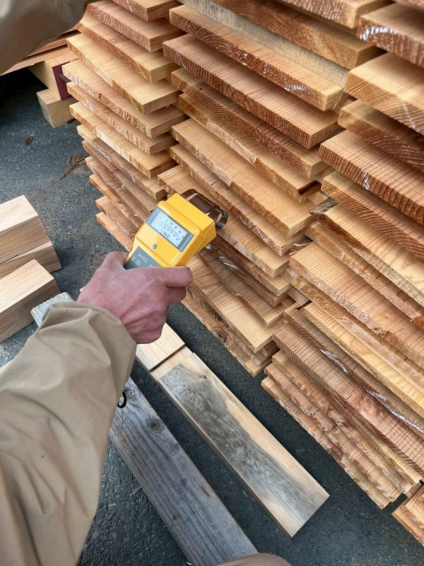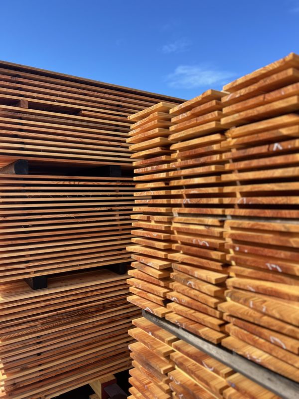 こちらはヤマタケで製材し、桟を入れて乾燥させていた羽目板です。
