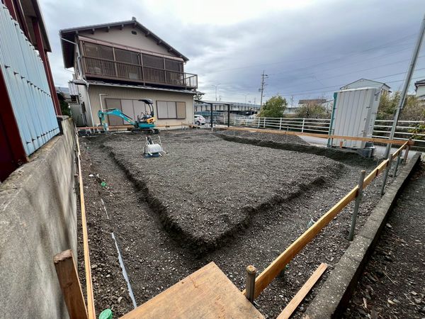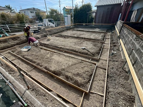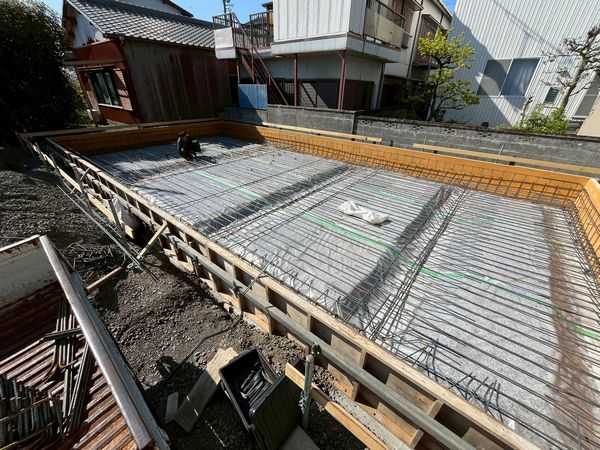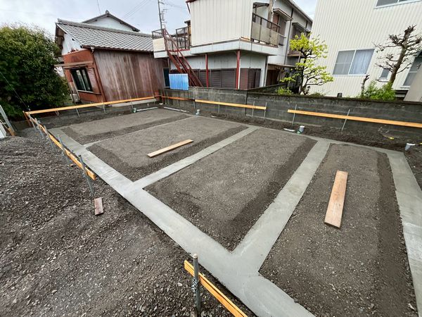 Y様邸の新築建て替え工事現場の、基礎工事が進んでいます。