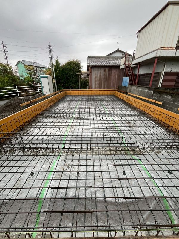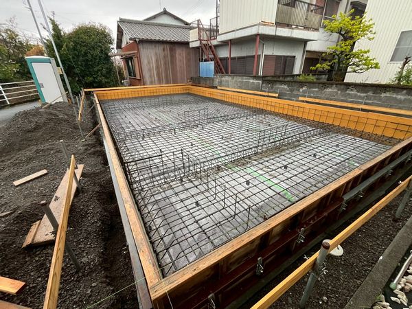 新築建替工事 -基礎配筋完了・登り梁加工