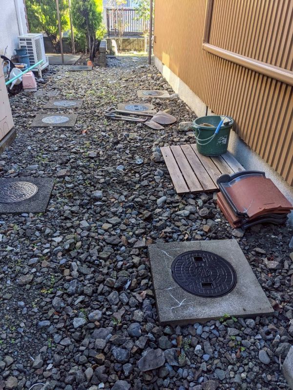 藤枝市の施工事例:排水桝の交換工事 -コンクリート桝から塩ビ桝へ