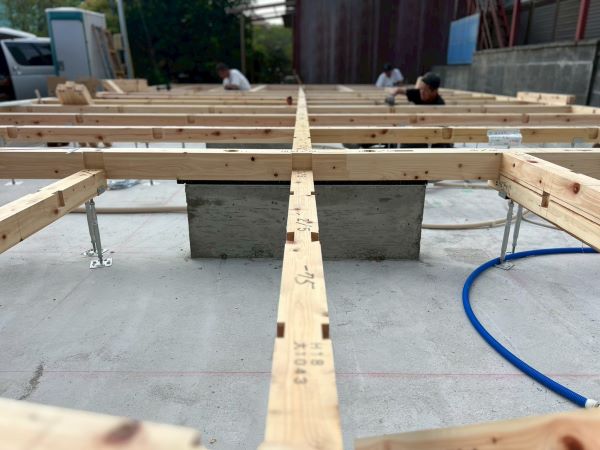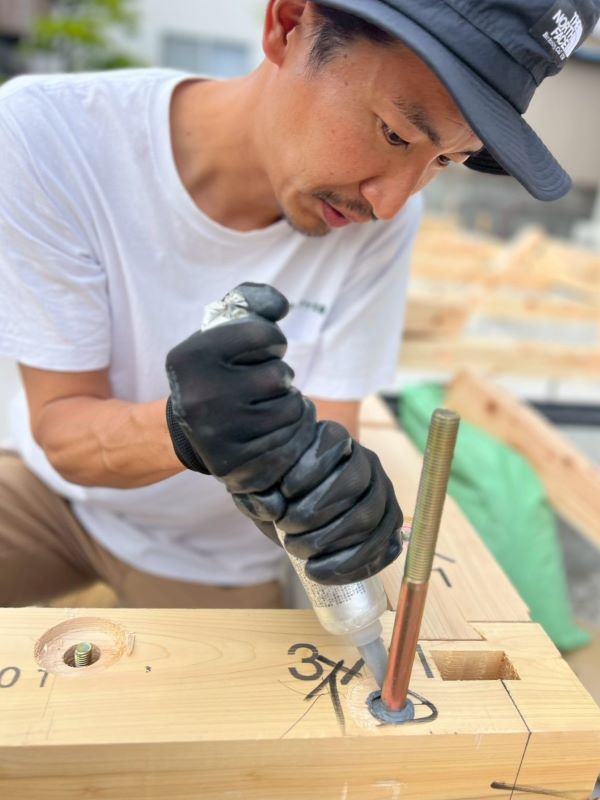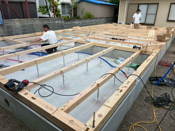 引き続き、土台の据え付け工事が始まりました。
