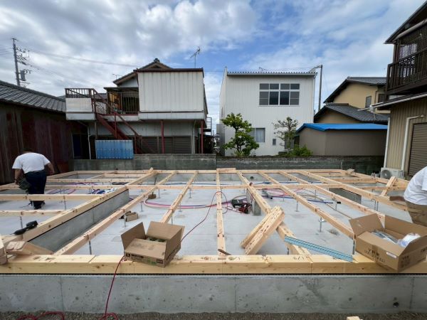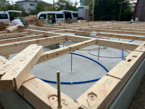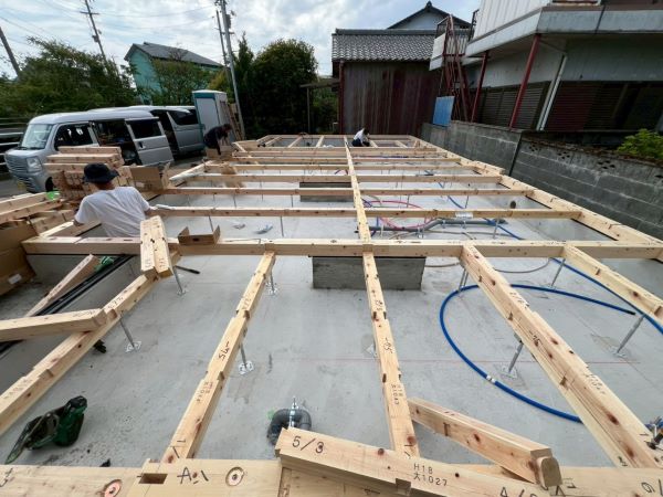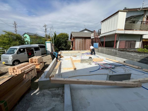 さて、基礎が完成した焼津市W様邸の新築建て替え工事現場では、