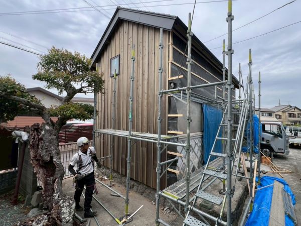 蔵のリフォーム工事中の焼津市のS様邸では、引き続き外壁工事が進んでいます。