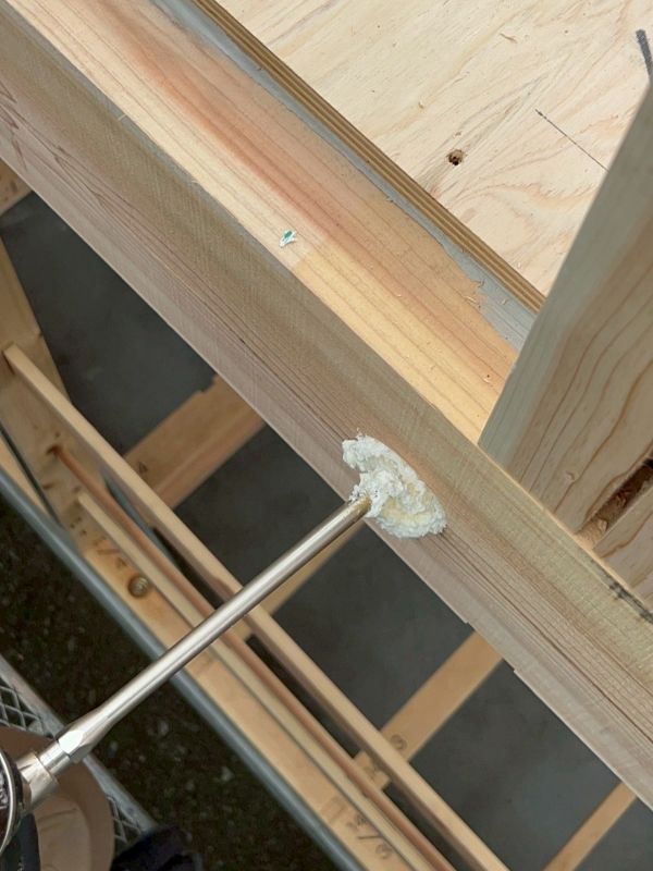 熱橋部となるボルトなどは発泡ウレタン断熱材を充填して、外気の熱がボルトを伝わって内側に侵入するのを防ぎます。