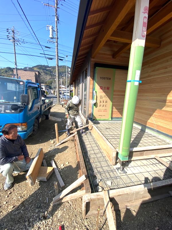 玄関ポーチや濡れ縁の下など、モルタル工事も進んでいます。