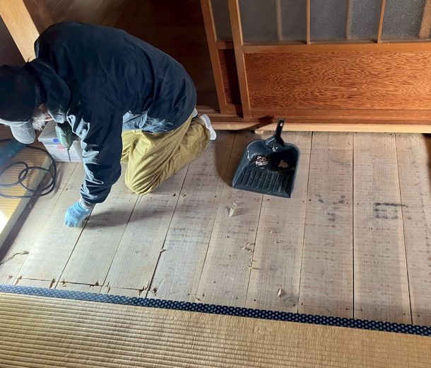 養生がしっかりされていないと床板が傷ついたり、汚れたり…