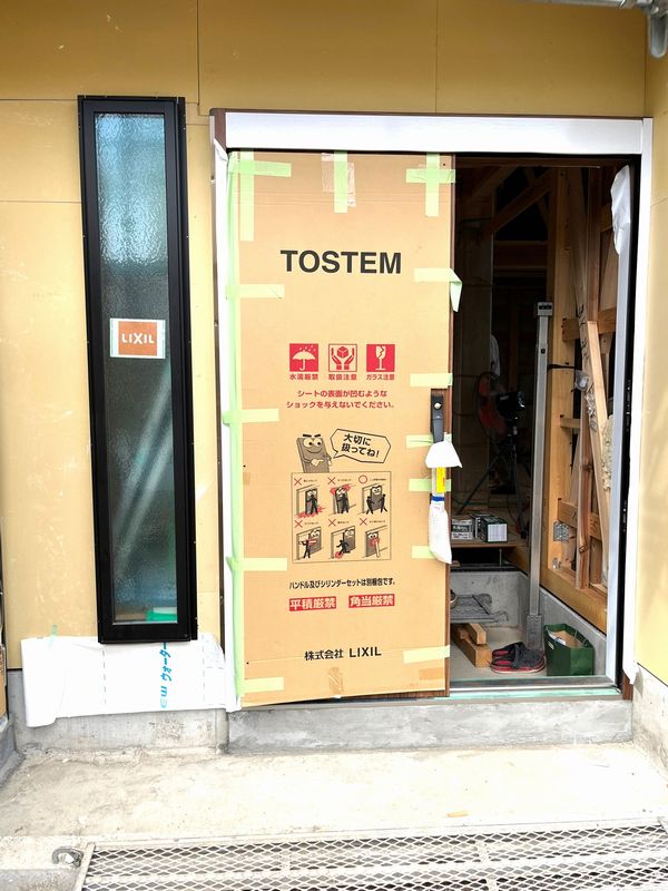 先日お知らせした玄関サッシが、しっかりモルタルで取り付けられました。